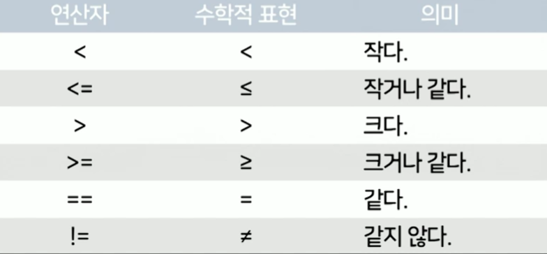 - True ๋๋ False ์์ฝ์ด๋ฅผ ์ฌ์ฉํ์ฌ ํํ๋ ๊ฐ๋ฅํจ.