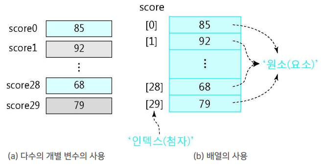 - λ°°μ΄μ λ³μ νλμ μΈλ±μ€(첨μ) λ‘ μ΄λ£¨μ΄μ§ μλ£κ΅¬μ‘°λ‘ λ³Ό μ μλ€.