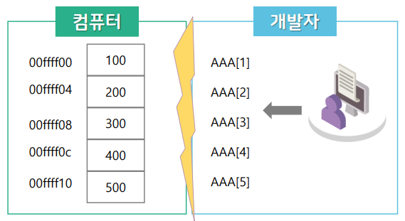 - λ°°μ΄μ μμλ€μ μ»΄ν¨ν° λ©λͺ¨λ¦¬μ μ°μμ μΈ κΈ°μ΅μ₯μμ ν λΉλμ΄ μμ°¨μ μΌλ‘ μ μ₯μ΄ λλ€.