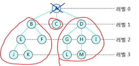 - ํต์ฌ์ ๋ฃจํธ ๋ ธ๋๋ฅผ ์ ๊ฑฐํ๋ค๊ณ ๊ฐ์ ์ ํด์ผํ๊ณ , ์ ๊ฑฐ๊ฐ ๋ ์ํ์์ ๋ถ๋ฆฌ๋ ์๋ธ ํธ๋ฆฌ์ ์งํฉ๋ค์ ์๋ฏธํจ.
