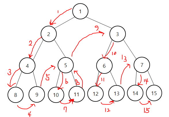 - ์ฆ, ์ผ์ ํ ์์์ ๋ฐ๋ผ ํธ๋ฆฌ์ ์๋ ๊ฐ ๋ ธ๋๋ฅผ ํ ๋ฒ์ฉ ๋ฐฉ๋ฌธํ๋๋ก ๋์์ฃผ๋ ์ํ ์ฐ์ฐ์ ํจ.