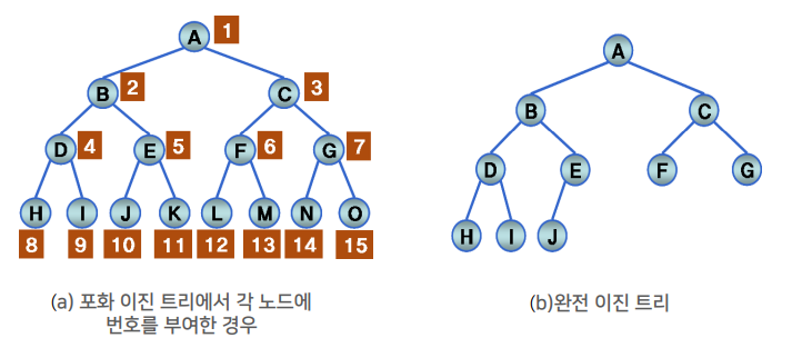 - ์ด ๋ ธ๋์ ๊ฐ์๊ฐ 2^k+1 - 1 ์ ์ด๊ณผํ์ง ์์ผ๋ฉด์, ํฌํ ์ด์ง ํธ๋ฆฌ์ ๋ ธ๋ ๋ฒํธ์ ํด๋นํ๋ ์ฐ์์ ์ธ ๋ฒํธ๋ฅผ ๊ฐ๋ ํธ๋ฆฌ์.