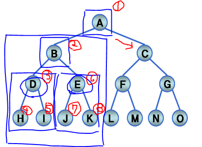 - ๋ฃจํธ๋ฅผ ๋จผ์ ๊ฐ์ A ์ถ๋ ฅ -> ๋ค์ ํธ๋ฆฌ์ ๋ฃจํธ์ธ B๋ก ๊ฐ์ B๋ฅผ ์ถ๋ ฅํจ -> ๊ทธ ๋ค์์ D