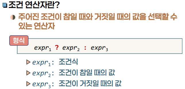 - expr1 쑰건μμ΄ μ°ΈμΈ κ²½μ° expr2 κ° μ€νλκ³ , κ±°μ§μΈ κ²½μ° expr3 μ΄ μ€νμ΄ λλ€.