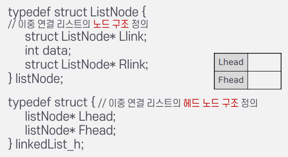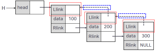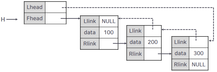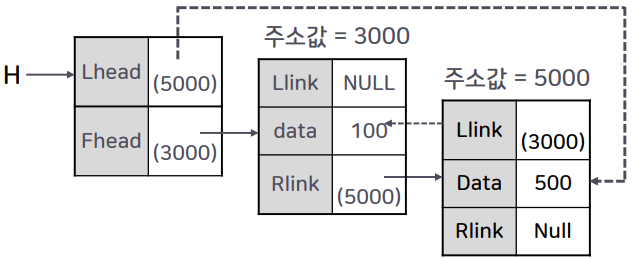 - ๋ ๊ฐ์ ๋งํฌ ํ๋ Llink, Rlink ์ ํ ๊ฐ์ ๋ฐ์ดํฐ ํ๋ ๊ตฌ์กฐ๋ฅผ ๊ฐ์ง.