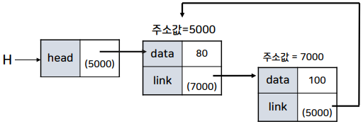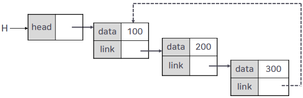 - ์ฐ๊ฒฐ๋ฆฌ์คํธ์ ๋ง์ง๋ง ๋ ธ๋์ ๋งํฌ ํ๋๋ฅผ ํ์ฉํด ์ํ ๊ตฌ์กฐ๋ฅผ ์ด๋ฃจ๋ ์ฐ๊ฒฐ ๋ฆฌ์คํธ๋ฅผ ์๋ฏธํจ.