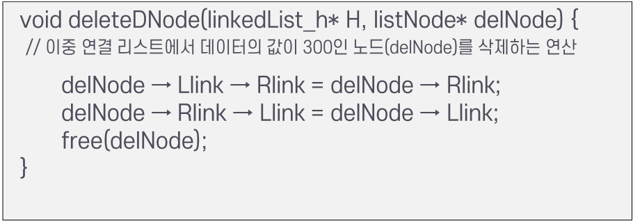 - ํด๋น ๋ก์ง์ ํตํด ์ด์ค ์ฐ๊ฒฐ ๋ฆฌ์คํธ์ ํน์ ๋ ธ๋๋ฅผ ์ญ์ ํ ์ ์๋ค.