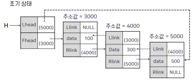 - ์ด๋ฌํ ์ด๊ธฐ ์ํ๋ฅผ ๊ฐ์ง๋ ์ด์ค ์ฐ๊ฒฐ ๋ฆฌ์คํธ๊ฐ ์๋ค๊ณ ๊ฐ์ ํ๊ฒ ์.
