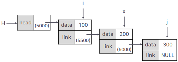 - ์์ ๊ฐ์ด ํค๋ ๋ ธ๋์ ์ผ๋ฐ ์ฐ๊ฒฐ ๋ฆฌ์คํธ์ ๋ ธ๋์ ๊ตฌ์กฐ์ฒด๋ฅผ ์ ์ ํ ์ ์์.