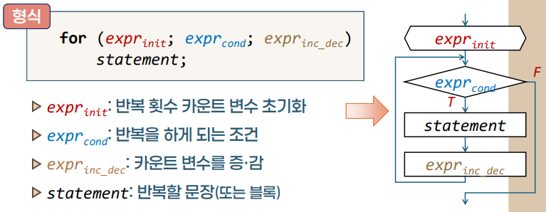 - ๋ฐ๋ณต ํ์๊ฐ ๋ช ํํ ๊ฒฝ์ฐ์ ์ฃผ๋ก ์ฌ์ฉ์ด ๋๋ฉฐ, ๋ฐ๋ณต ํ์๋ฅผ ์นด์ดํธํ๊ธฐ ์ํ ๋ณ์๋ฅผ ์ฌ์ฉ์ ํ๋ค.