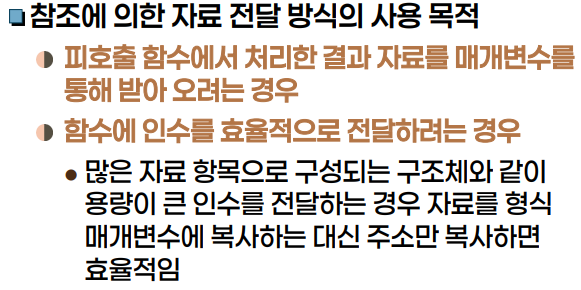 - ์ฃผ์๋ฅผ ์ ๋ฌํ๊ธฐ ์ํด ํ์ ๋งค๊ฐ๋ณ์๋ฅผ 'ํฌ์ธํธ' ํ์ผ๋ก ์ ์ธ์ ํด์ผ ๋จ.