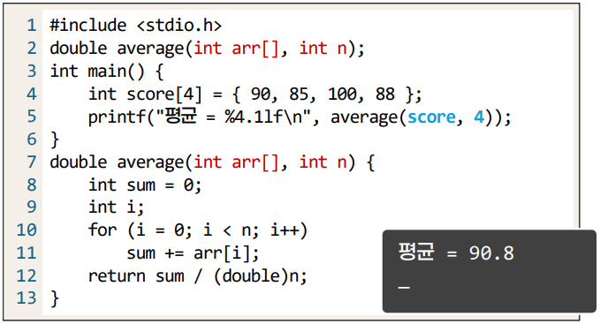 - ํ์ ๋งค๊ฐ๋ณ์์์ int arr[] ์ ์ํ ๋ฐฐ์ด์ ๋ฐ์ ์ ์๋๋ก ๋งค๊ฐ๋ณ์ ์ ์ธ์ ํด์ค์ผ ํ๋ค.