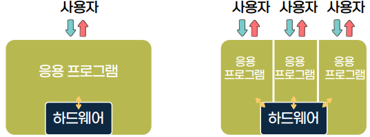 - νλμ νλμ¨μ΄ μ¬λ¬ μ¬μ©μ 곡μ : μμ© νλ‘κ·Έλ¨ μ¬λ¬κ°κ° νλμ νλμ¨μ΄μμ λμνκ² λλ©΄, νλμ¨μ΄ λ΄λΆμ CPUλ λ©λͺ¨λ¦¬ λ±μ μμμ λν μΆ©λμ΄ μΌμ΄λ μ μμ΄μ μμ© νλ‘κ·Έλ¨κ°μ νΈνμ±μ κ³ λ €ν΄μΌ λλ€λ μ΄λ €μμ΄ μμ.