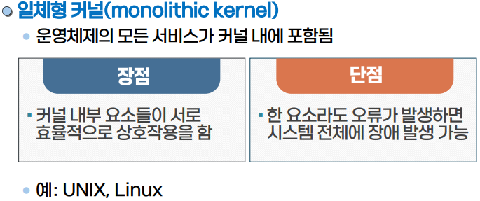 - μΌμ²΄ν 컀λμ μ΄μ체μ μ λͺ¨λ μλΉμ€κ° 컀λ λ΄μ ν¬ν¨μ΄ λμ΄μ, 컀λ = μ΄μ체μ μΈ κ²½μ°μ΄λ€.