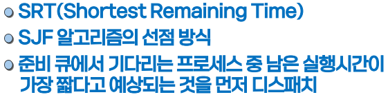 - SJF(๊ฐ์ฅ ์งง์ ์์ ์๊ฐ์ ํ๋ก์ธ์ค ์ฐ์ ์์) -> ์ ์ ๋ฐฉ์์ผ๋ก ๋ณ๊ฒฝ -> SRT