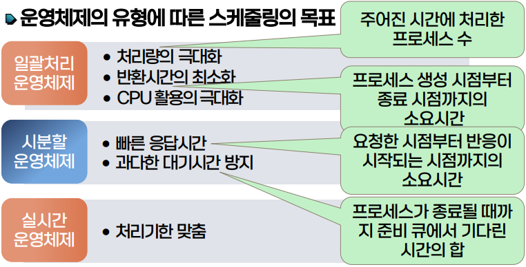 (4) ์ด์์ฒด์ ์ ์ ํ์ ๋ฐ๋ฅธ ์ค์ผ์ค๋ง์ ๋ชฉํ