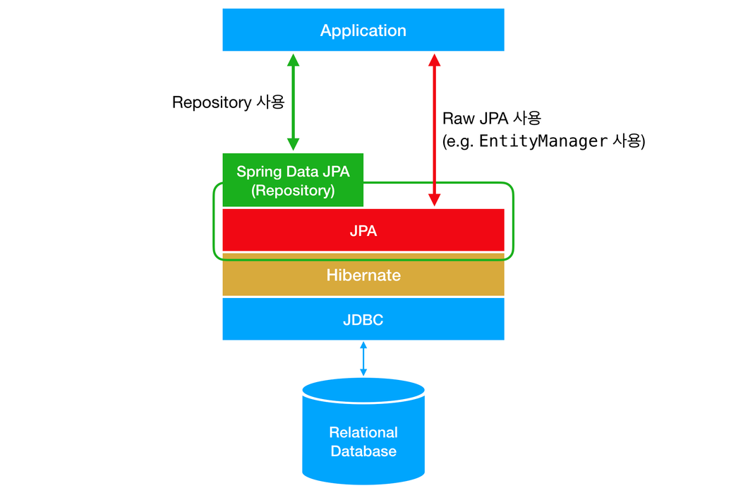 JPA는 하나의 표준으로써 명세이다. 이걸 구현한 Hibernate나 다른 구현체로 언제든지 갈아끼워서 이용할 수 있다.