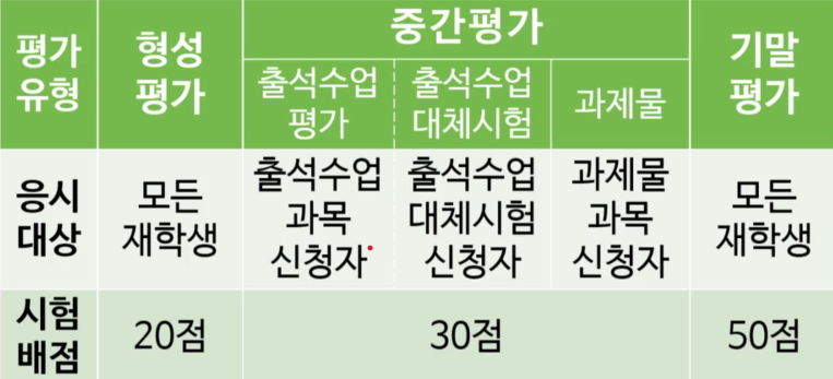 * ์ผ๋ถ๊ณผ๋ชฉ์ ๊ณผ์ ๋ฌผ ํ๊ฐ๋ฅผ ์ค์ํ๋ ๊ฒฝ์ฐ๋ ์์.