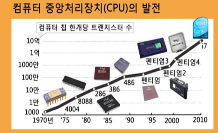 - 1960๋ ๋ ์ค๋ฐ : ํ ์นฉ์ 1,000๊ฐ ํ๋ก์์ ์ง์