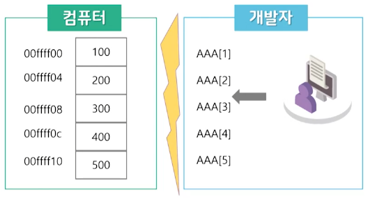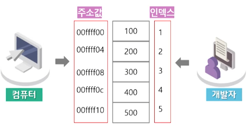 - λ°°μ΄μ(μΆμνλ) μΈλ±μ€κ°μ νλ‘κ·Έλλ° μΈμ΄μ μ»΄νμΌ κ³Όμ μ ν΅ν΄ λ©λͺ¨λ¦¬ μ£Όμκ°κ³Ό μ°κ²°μ΄ λ¨.