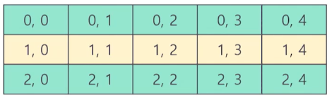 - C μΈμ΄μμλ ν μ°μ μμλ‘ μ μ₯μ΄ λλ©°, A[3][5] μ μ μΈνλ©΄ λ€μκ³Ό κ°μ λ°°μ΄μ΄ μμ±μ΄ λλ€.