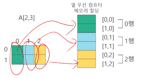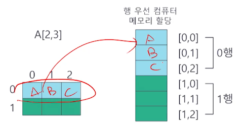- λ°λΌμ, A[] μ λ©λͺ¨λ¦¬ μμμ£Όμλ₯Ό a λΌκ³ κ°μ νλ©΄, A[i] μ λ©λͺ¨λ¦¬ μ μ₯ μ£Όμλ [a +i*k] κ° λ¨