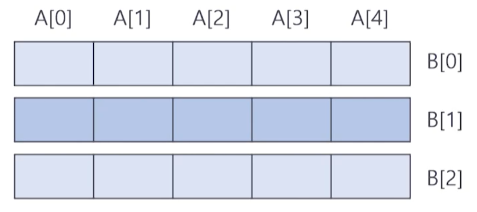 - κ°λ‘μ 1μ°¨μ λ°°μ΄ λ¨μλ‘ λ©λͺ¨λ¦¬ μμμ μ°μ ν λΉν¨