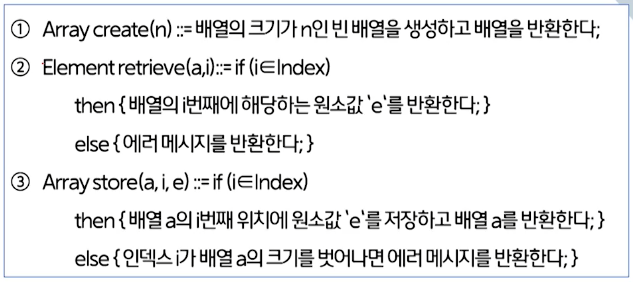 (3) ADT Array κ°μ²΄: <i index, e Element> μλ€μ μ§ν©