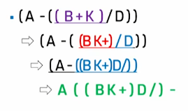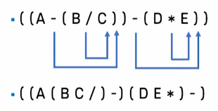 - ex) A + B * C + D -> ((A + (B * C)) + D)