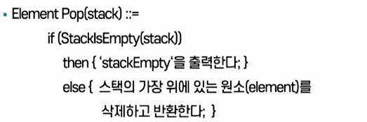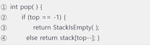 - 4. Pop(stack): μ μΌ λ§μ§λ§ μμΉ μ¦, topμ μμΉμ μλ 'T' μ κ°μ΄ μμ λλ©΄μ 'T' λ°μ΄ν°λ₯Ό λ°νλ°λλ€.
