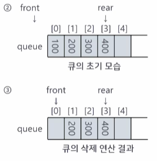 - Queue delete -> front μ μμΉ 1λ² μΈλ±μ€λ‘ μ΄λ