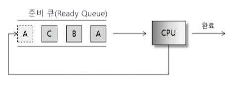 - RR(Round Robin) μ€μΌμ€λ§ κΈ°λ²μ λνν μμ€ν μ μ ν©νλ©°, μΌμ μκ°(time slice)λ§ CPUλ₯Ό μ¬μ©νλ μ€μΌμ€λ§ λ°©μ