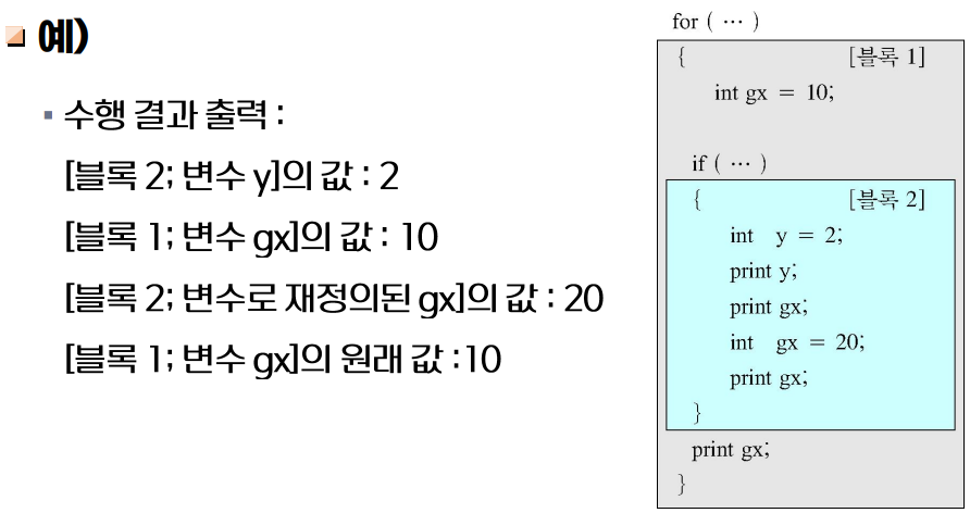 - μ¦, λΈλ‘λ΄ λ³μμ λν μ ν¨ λ²μ κ²°μ λ¬Έμ λ νλ‘κ·Έλ¨μ μ€νκ³Ό κΉμ κ΄λ ¨μ κ°μ§λ€.