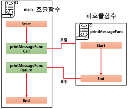 - ν¨μμ νΈμΆμ΄ λ°μλλ©΄, ν¨μλ₯Ό νΈμΆν νλ‘κ·Έλ¨μ μνμ΄ μΌμ μ€λ¨λκ³ νΈμΆλ ν¨μλ‘ μ€ν μ μ΄κ° μ΄μ λ¨.