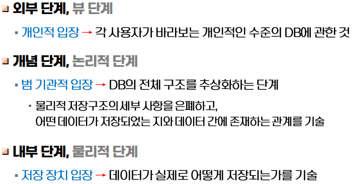 - DBMS ์ฌ์ฉ์์ ๊ด๋ฆฌ์๊ฐ "๋ฐ์ดํฐ๋ฅผ ๋ ผ๋ฆฌ์ , ๋ฌผ๋ฆฌ์ ์ผ๋ก ์ด๋ป๊ฒ ๊ตฌ๋ถํด์ ๋ค๋ฃฐ๊น"๋ฅผ ์ค๋ช ํ๋ ๊ฐ๋ ๋ชจ๋ธ์.