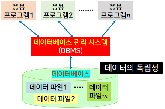 - ๋ฐ์ดํฐ ํ์ผ ๊ตฌ์กฐ์ ๋ํ ์ ๋ณด๊ฐ ์์ฉ ํ๋ก๊ทธ๋จ์ผ๋ก๋ถํฐ ๋ถ๋ฆฌ๋์ด ๊ด๋ฆฌ๊ฐ ๋จ.