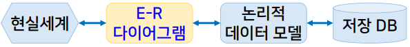 - ์ฆ, ํ์ค ์ธ๊ณ๋ฅผ ๋ฐ์ดํฐ๋ฒ ์ด์ค๋ก ์ฎ๊ธฐ๊ธฐ ์ ์ ๊ทธ๋ฆผ์ฒ๋ผ ํํํ๋ ๊ฐ๋ ์ ๋ชจ๋ธ๋ก ๋ณผ ์ ์๋ค.