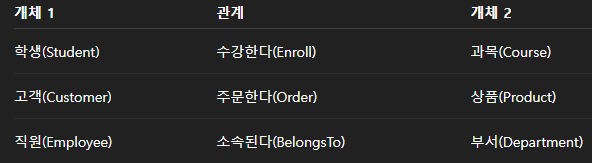 - **๋ํ, ๊ฐ์ฒด-๊ด๊ณ ๋ชจ๋ธ์ ๊ฐ๋ ์ ๊ด๊ณ๋ก ๋ณผ ์ ์์.**