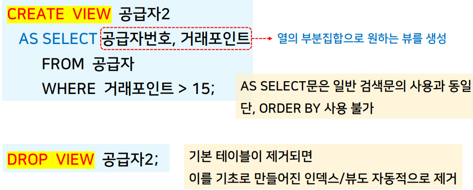 - μ¦, λ·°μ λ³Έμ§μ 쿼리μ μ΄λ¦μ λΆμ¬μ μ¬μ¬μ© κ°λ₯νκ² νλ κ²μ΄ ν΅μ¬μ΄λ©° λ³Έμ§μ. ( κ·Έλ¦¬κ³ SELECT λ¬Έλ§ μ¬μ©? )