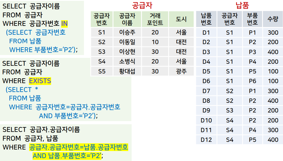 - EXISTS: μλΈμΏΌλ¦¬ κ²°κ³Όκ° νλλΌλ μ‘΄μ¬νλμ§ μ¬λΆλ§ νμΈ