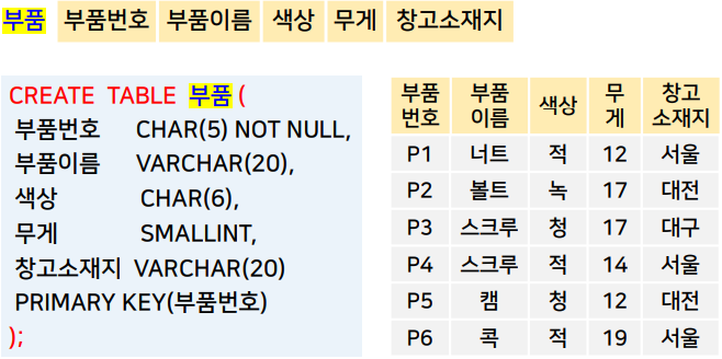 - μ¦, μμ κ°μ΄ μ¬λ¬ ν μ΄λΈμ CREATE TABLE μ΄λΌλ λ°μ΄ν° μ μμ΄λ₯Ό ν΅ν΄ λ§λ€ μ μμ.