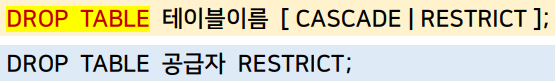 DROP TABLE employees; # λν΄νΈ RESTRICT