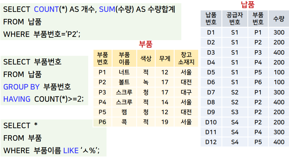 - GROUP BY λ₯Ό ν΅ν΄ κ·Έλ£ΉμΌλ‘ λ¬Άμ μ μμΌλ©°, GROUP BY μλ HAVING 쑰건μ μ μ¬μ© ν μ μμ.
