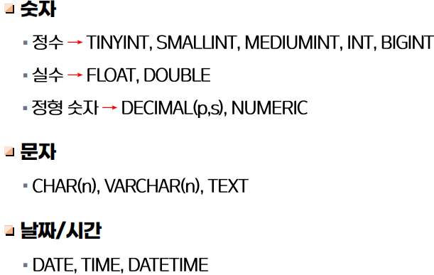 - λ°μ΄ν° μ μμ΄ - ν μ΄λΈμ λ§λλ κ³Όμ μλ λ°μ΄ν° νμ μ κ°μ΄ λͺ μλ₯Ό ν΄μ€μΌ ν¨.