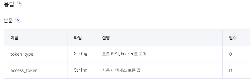 요청에 대한 응답으로는 token_type인 bearer과 access_token 토큰 값을 받을 수 있다. 또한, expires_in(토큰 만료 시간),